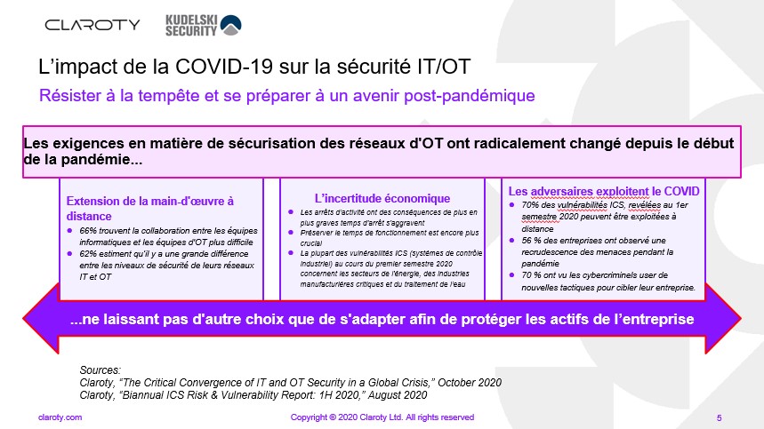 Une table ronde se tenait le jeudi 26 novembre 2020 autour du thème «Cybersécurité industrielle : La convergence entre les réseaux informatiques de l’entreprise – IT pour le réseau informatique corporate traditionnel et OT pour la partie industrielle – s’accélère et accentue les problèmes de sécurité». La crise sanitaire de Covid-19 n’est d’ailleurs pas totalement étrangère à cette accentuation des problèmes de sécurité sur les réseaux industriels OT.
