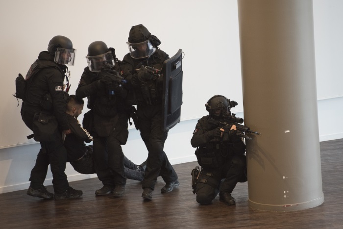 Pour démontrer la coopération entre les différents acteurs des forces de l’ordre, un exercice grandeur réelle a été organisé le 9 octobre 2018 au Groupama stadium (60 000 places), en marge du G6 qui se déroulait à Lyon les 8 et 9 octobre. Les ministres de l’Intérieur des six pays les plus peuplés de l’UE (France, Allemagne, Royaume-Uni, Espagne, Italie, Pologne) ainsi que près de 50 délégations étrangères ont assisté à cette simulation d’attaque terroriste.
