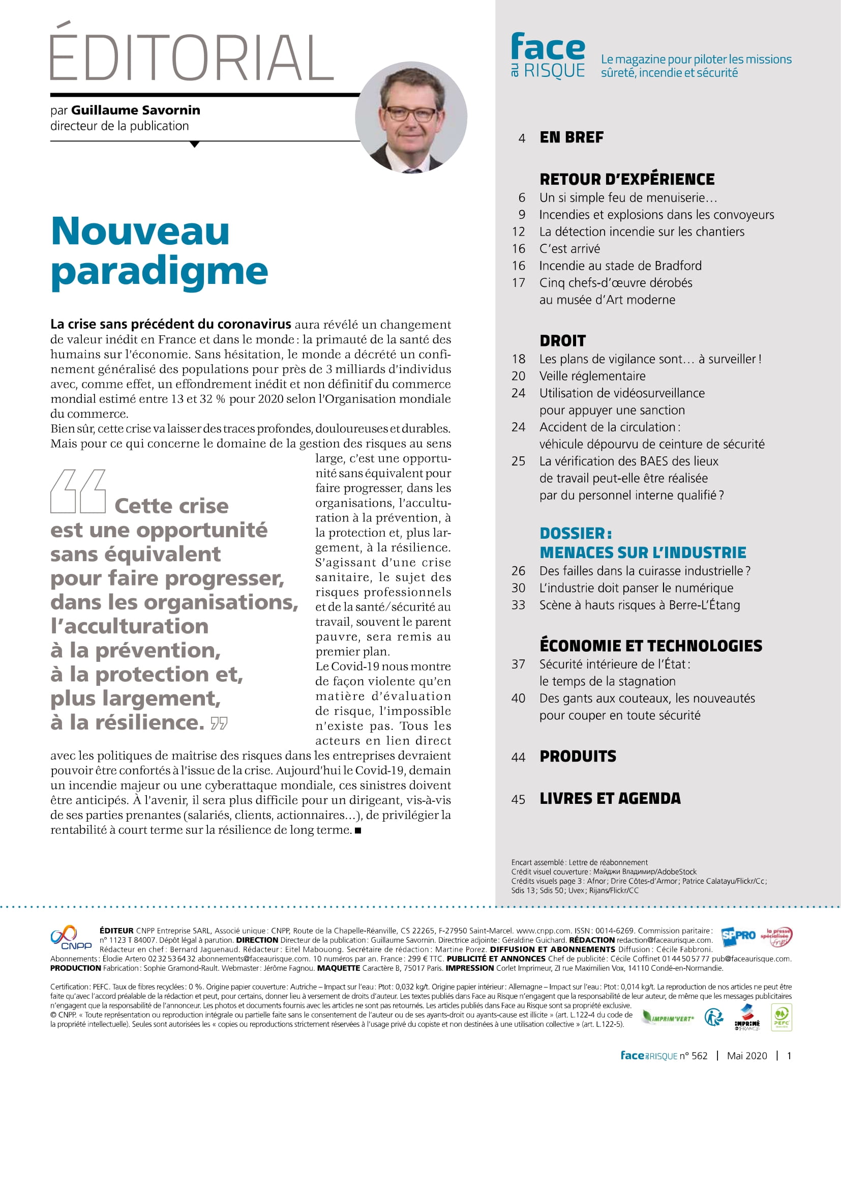 Pour son numéro de mai, le 562e du nom, Face au Risque consacre un dossier spécial aux menaces pesant sur l’industrie.