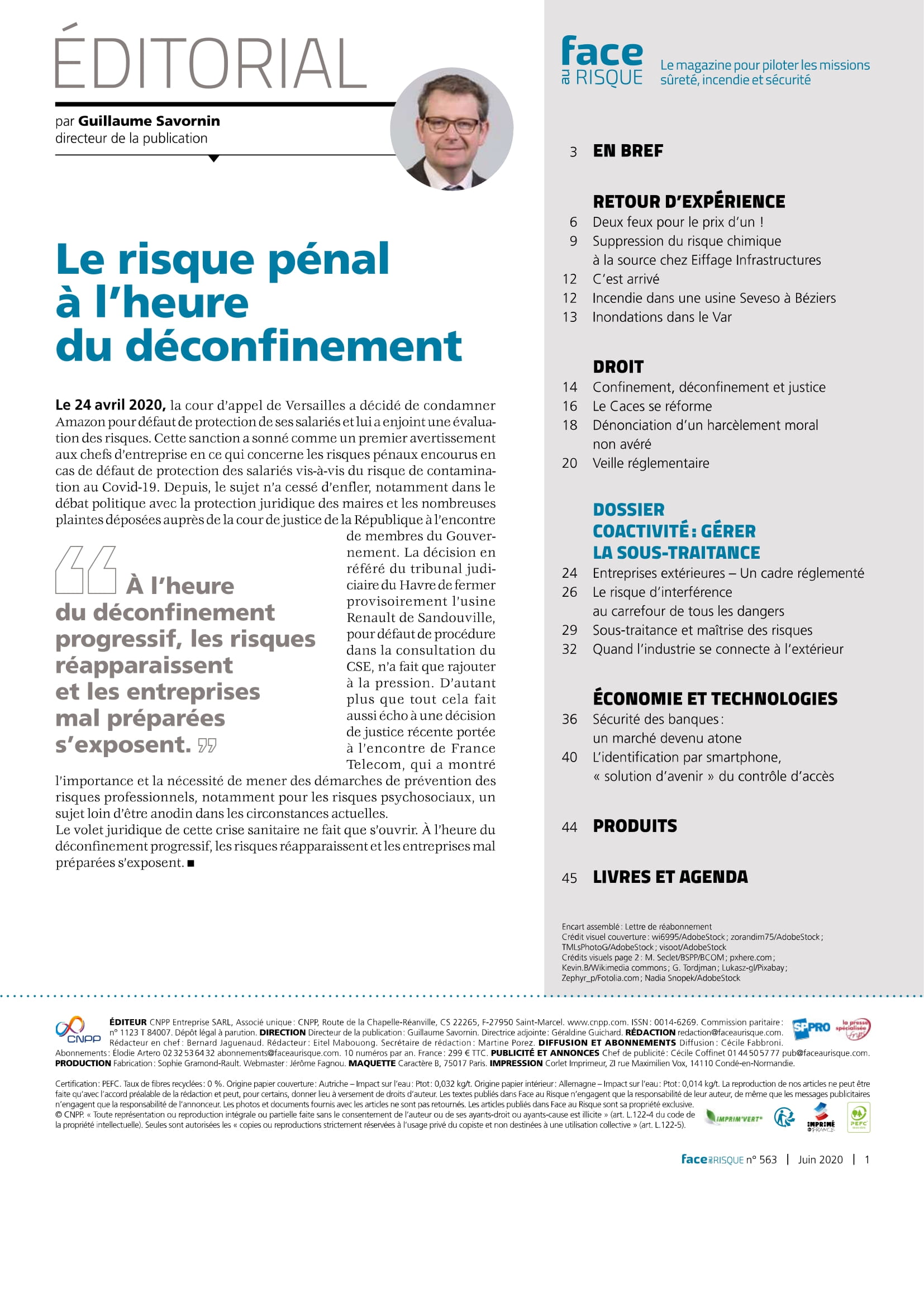 Face au Risque juin 2020 : coactivité et sous-traitance à l’affiche du n° 563