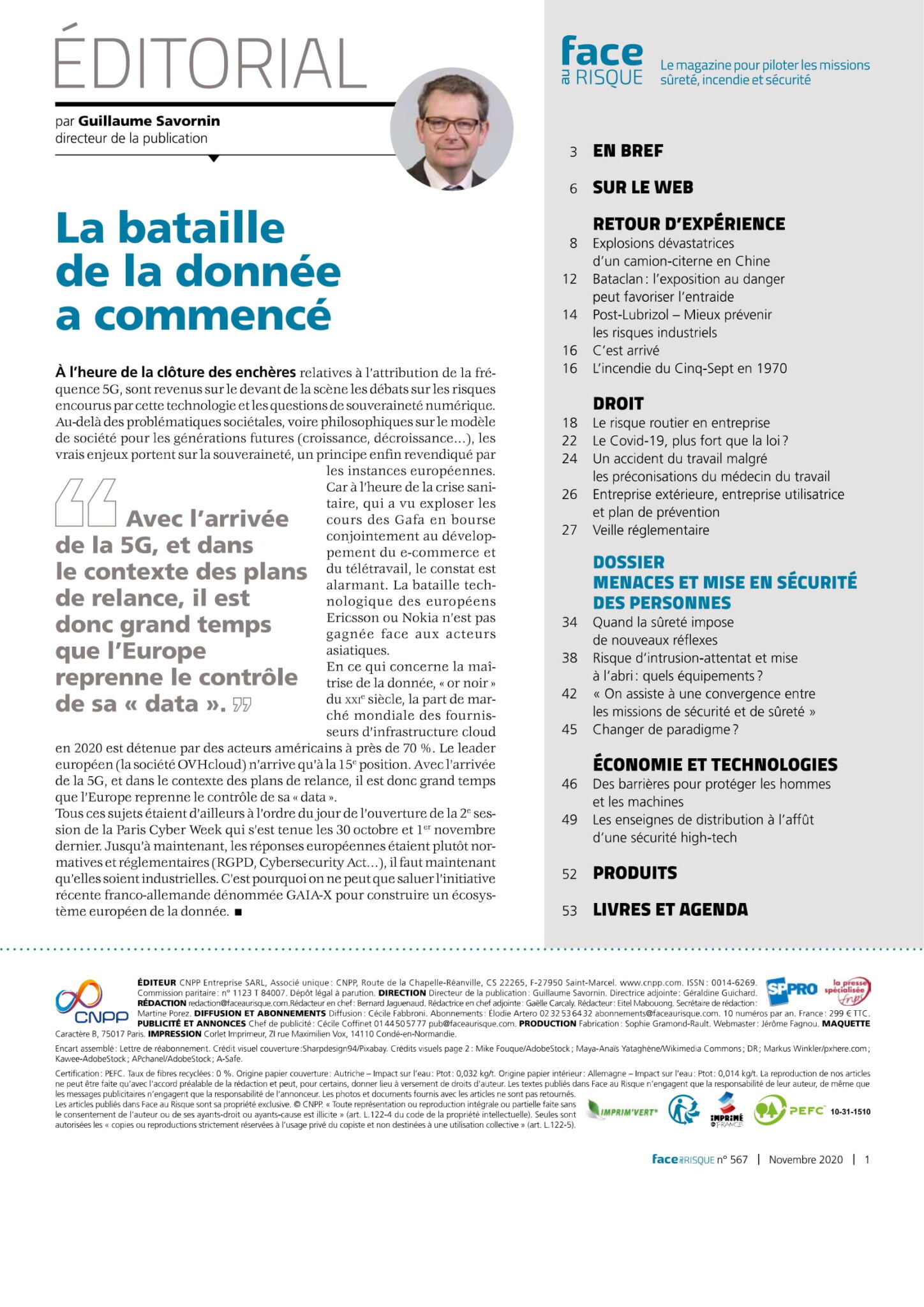 Le numéro de novembre 2020 de Face au Risque, 567e du nom, consacre un dossier spécial aux menaces et à la mise en sécurité des personnes.