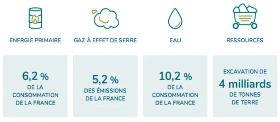 Rapportée aux impacts environnementaux annuels de la France, cela représente l’équivalent de :