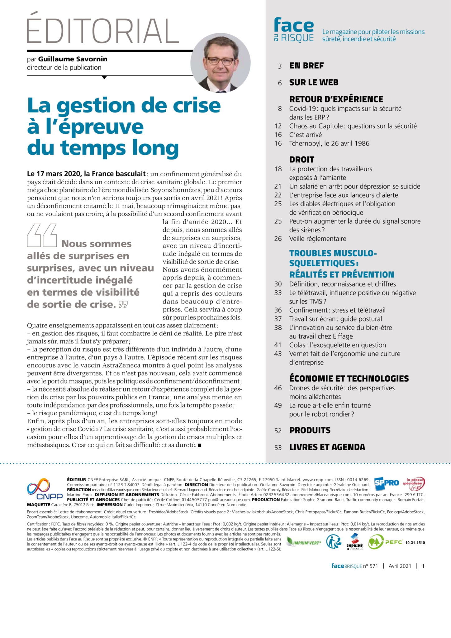 Le numéro d’avril 2021 de Face au Risque, 571e du nom, consacre un dossier spécial aux troubles musculo-squelettiques (TMS).