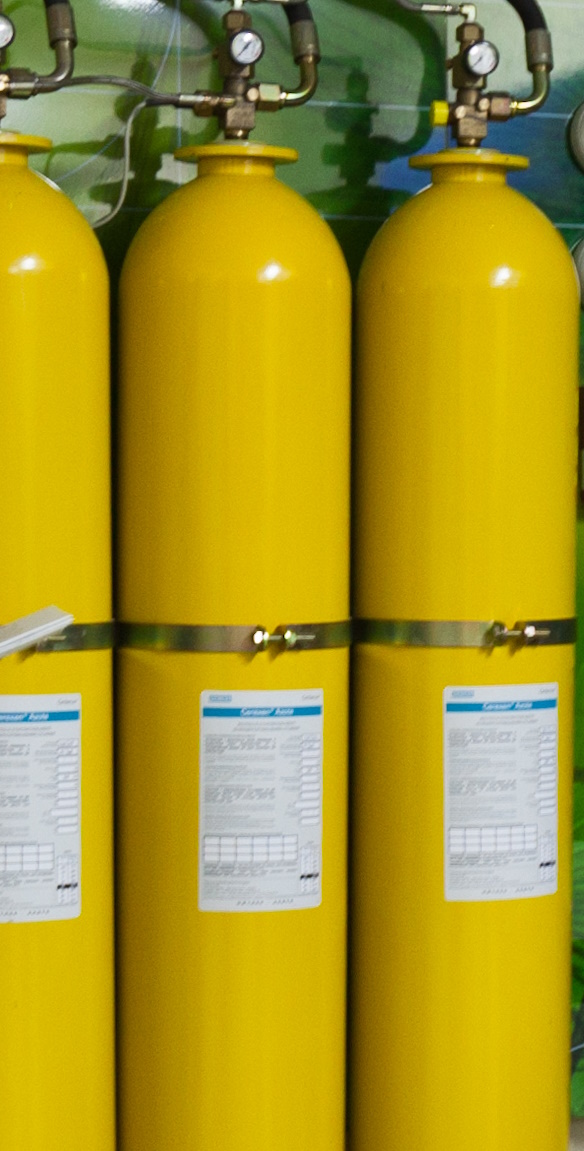 Bouteilles de gaz inerte (azote) d’une installation fixe à gaz. Crédit : P. Dutel/CNPP
