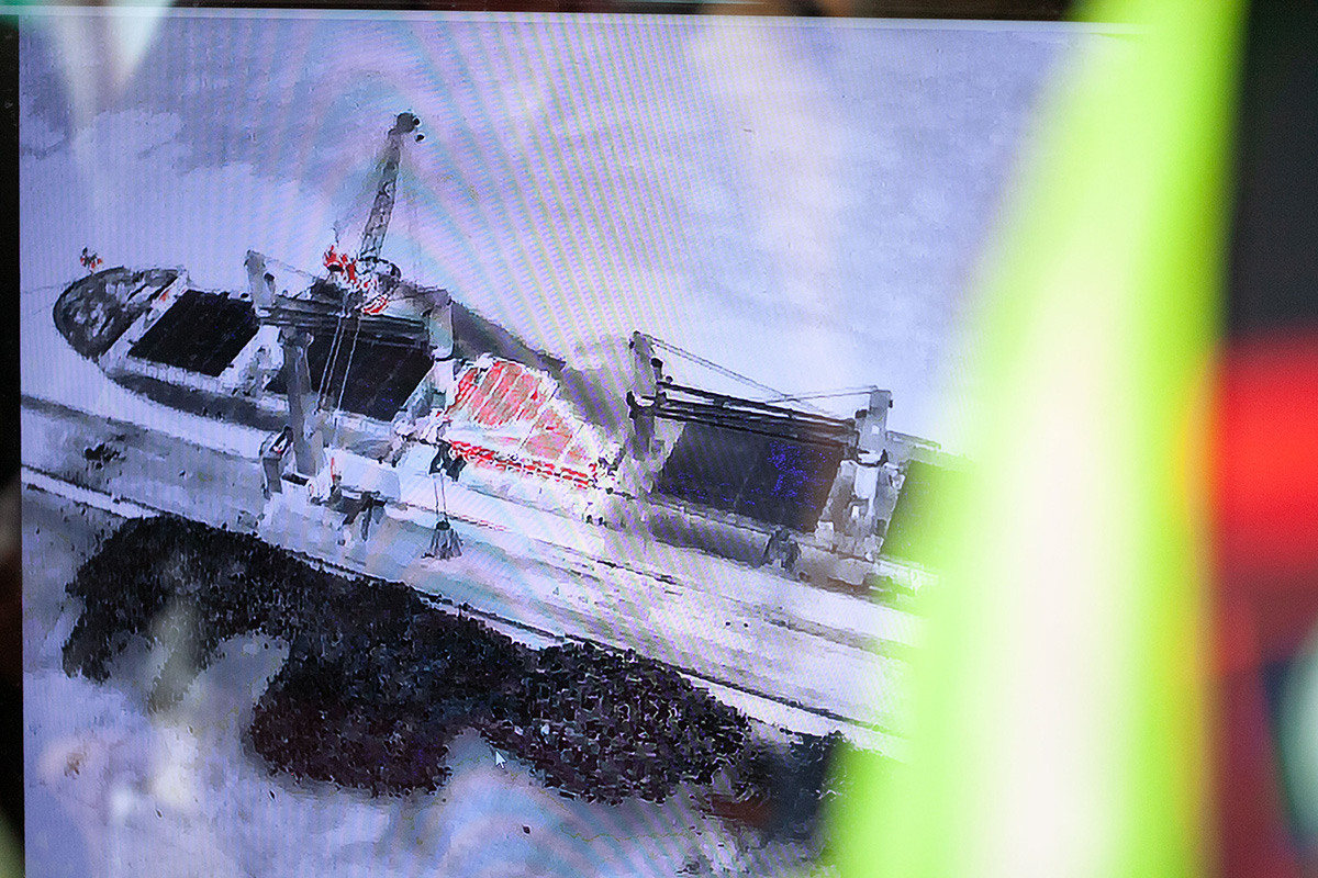 Il faut parallèlement monitorer la situation à l’intérieur de la cale, malgré l’impossibilité de l’ouvrir. En termes de température, pour évaluer le degré de développement du foyer, et de gaz de combustion. « Tout ça s’est fait de manière indirecte, avec des mesures sur les parois des panneaux de cale. Nous avons aussi rapidement fait voler nos deux drones avec caméra thermique, ce qui nous a permis de localiser la source de foyer, ne serait-ce qu’en 2D », raconte le lieutenant-colonel. Et par exemple réorienter le remorqueur vers la zone la plus chaude.