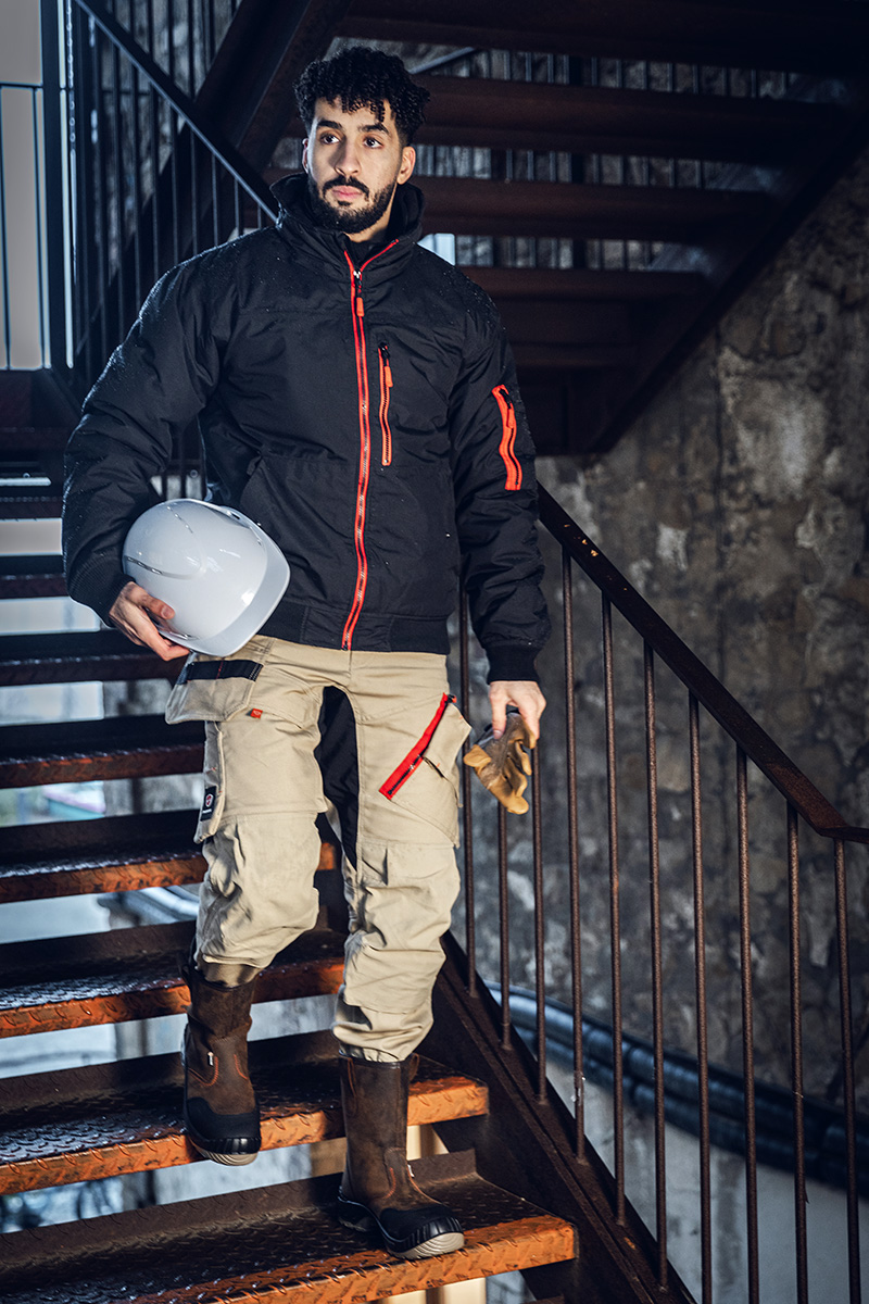 Les vestes voient leur col réhaussé avec une ligne décrochée au menton afin d’offrir une parfaite liberté de mouvement, leur coupe ergonomique permet de rester en place tout en suivant les mouvements pour mieux protéger les professionnels des intempéries.