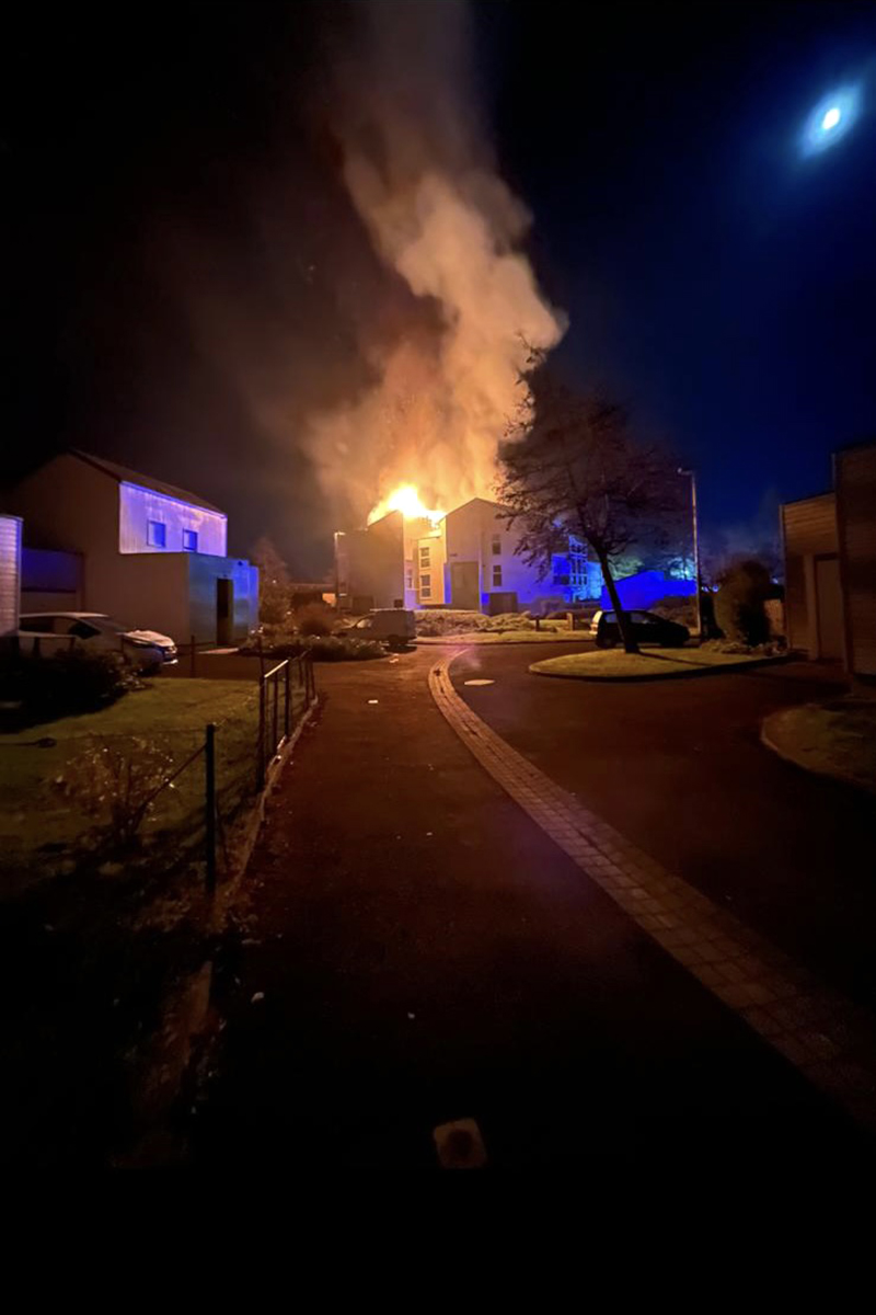 À leur arrivée, les pompiers constatent que les flammes recouvrent déjà la façade de l’immeuble sur ses deux étages et s’attaquent à la toiture.